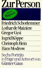 Make it easy to read Günter Gaus: Zur Person - Sechs Porträts in Frage und Antwort. Friedrich Schorlemmer, Lothar de Maiziere, Gregor Gysi, Ingrid Köppe, Christoph Hein und Hans Modrow PDF Online book, without need to go to the bookstore or to the library.